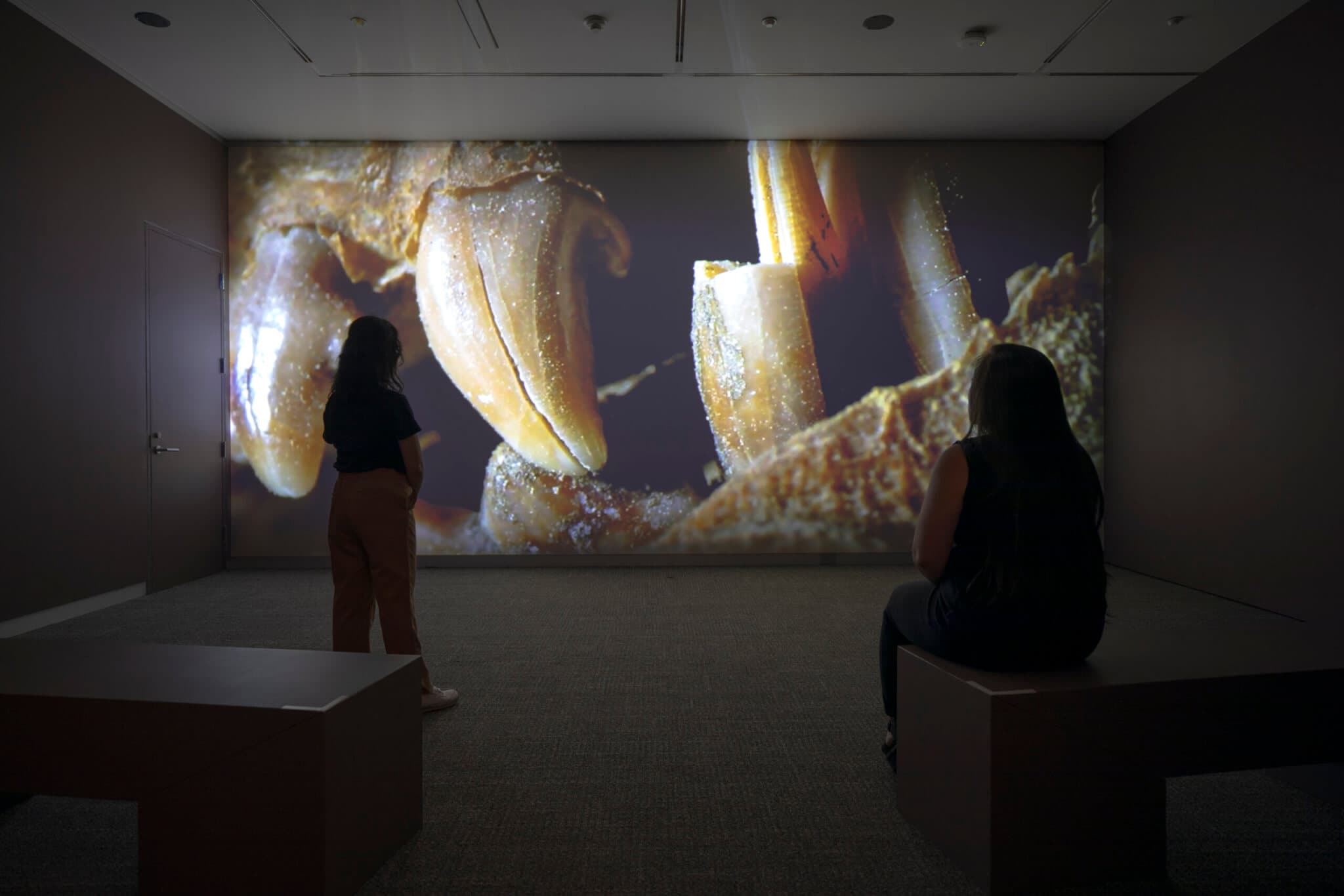 Maya Watanabe, Zhùr, 2023. Single channel video installation. 18 minutes. Photo by Mel Taing. Courtesy of Mass Art Museum.