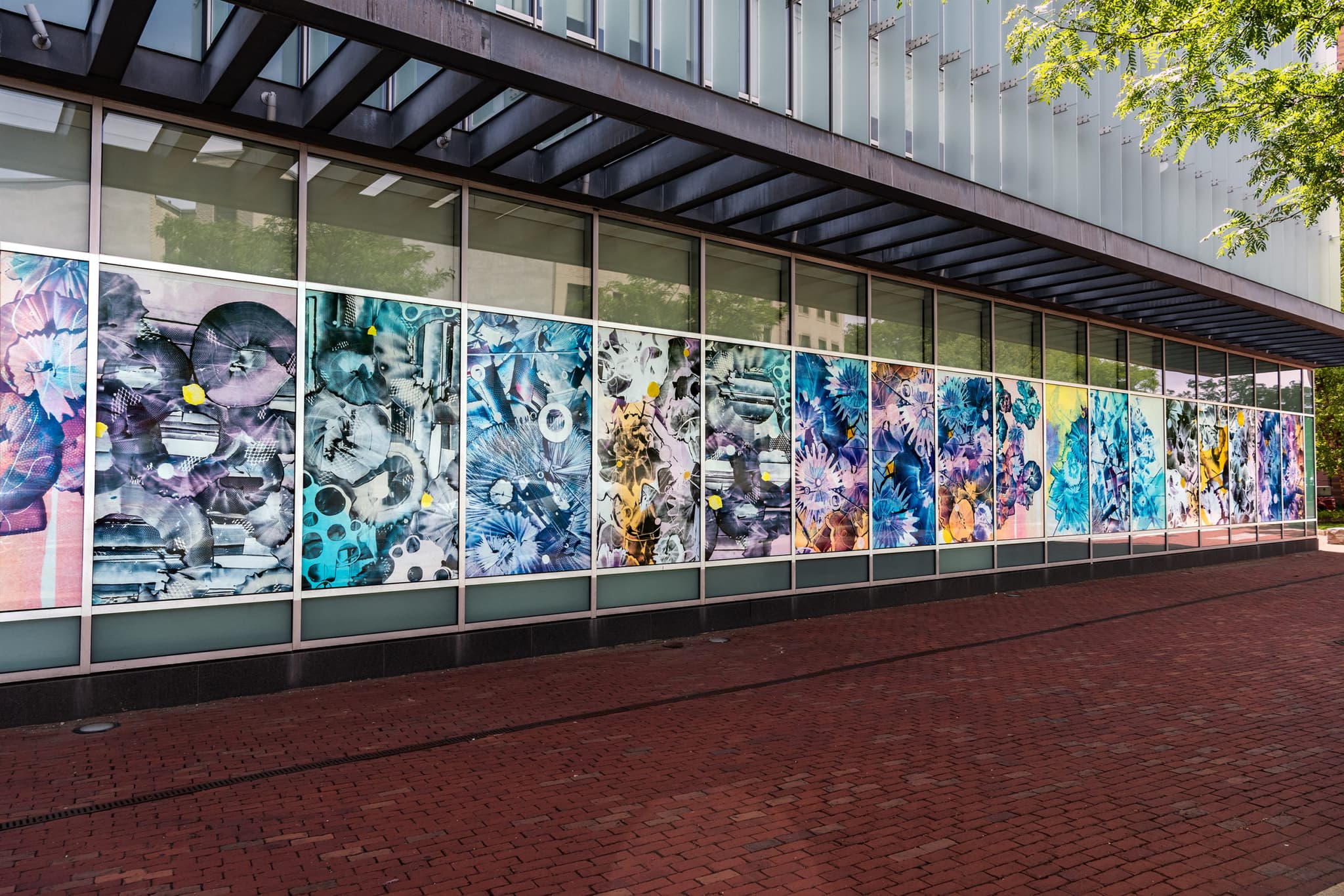 Cicely Carew, What Lies Within, window installation view at Northeastern University, 2017-2020. 9’ x 120’. Photo courtesy of the artist.