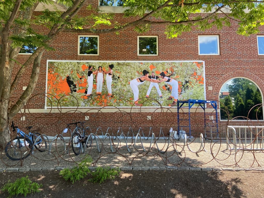 Puerto Rican-born, Oakland-based artist Sofía Córdova is taking over the SMFA at Tufts. Greeting visitors via billboard outside of the SMFA building entrance, A Touch Could Be The Spark, How Will I Recognize You? (Braid & Huddle, Billboard) was commissioned to coincide with Córdova’s solo exhibition at the SMFA, “Backed Up Into Dawn.” While the show will run from August 30 to October 23, A Touch Could be the Spark will be up through August 2023.