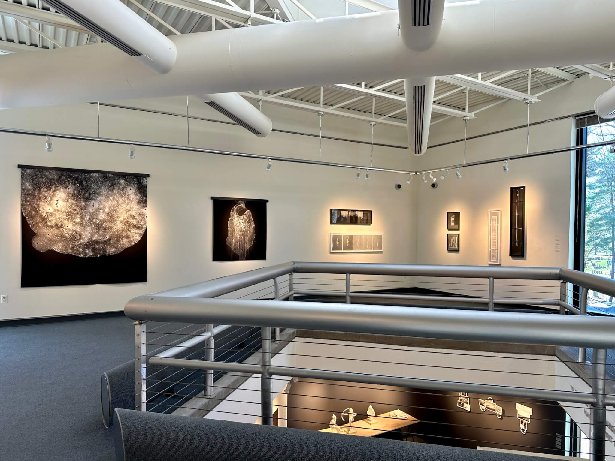 Installation view featuring Shoshannah White’s photograms, “Circle of the Sun,” at the art gallery of the University of New England in Portland, 2025. Photo courtesy of UNE Art Gallery.