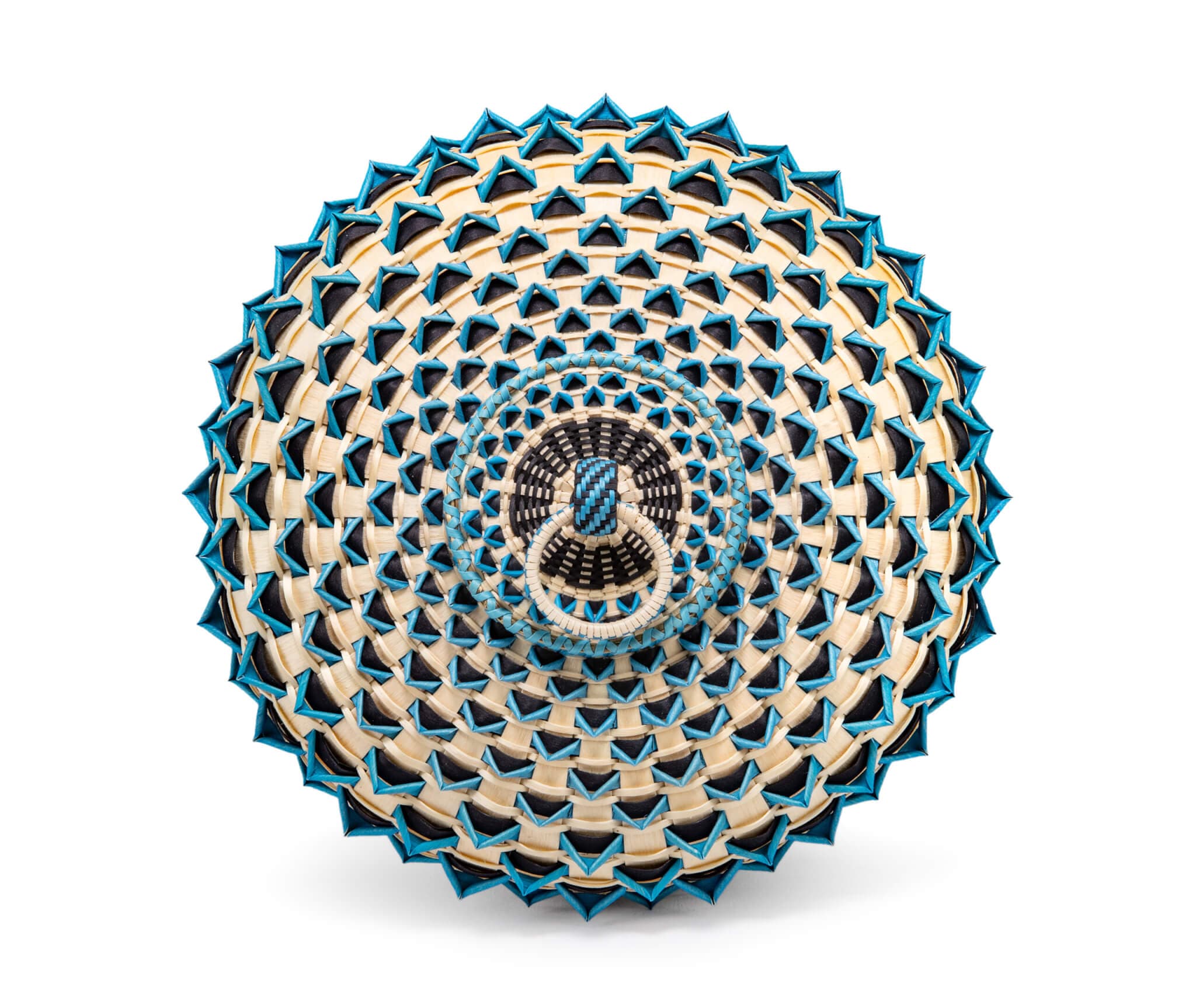 Jeremy Frey (Passamaquoddy, born 1978), Blue Point Urchin (detail), 2016, ash, sweetgrass, and dye, 5 x 9 x 9 inches. Collection of Dr. and Mrs. Ari and Lea Plosker. © Jeremy Frey. Image courtesy Eric Stoner.