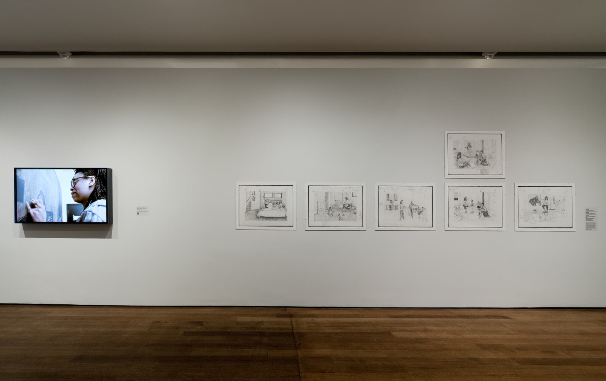 (left) LaToya M. Hobbs, Scene 4: Bedtime for the Boys, from Carving Out Time, 2020–21. (right) LaToya M. Hobbs, Scene 5: The Studio, from Carving Out Time, 2020–21. Installation view, “LaToya M. Hobbs: It’s Time,” on display March 1–July 21, 2024, at the Harvard Art Museums, Cambridge, MA. Photo © President and Fellows of Harvard College. Courtesy of the Harvard Art Museums.