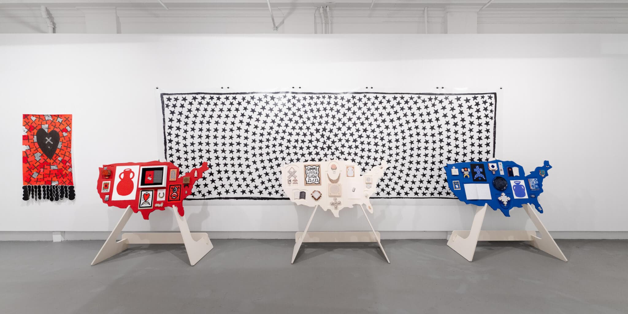 In the main gallery at SPACE in Portland, Julia Arredondo draws on her experience as a Tejana living in Maine. “Just Passing Through” blends cultural symbols—like an outline of the US and myriad rows of stars—and New England craft traditions in a bold red, white, blue, and black palette to explore American identity. Though my western Pennsylvania roots are a far cry from Arredondo’s South Texas origins, I recognize a thread: the feeling of holding past and present at the same time, of adopting new traditions while making a new place home. In the smaller project space within the gallery, Vin Caponigro’s “An Appeal to Heaven”—co-curated by SPACE and Arredondo—acts as both an extension of Arredondo’s show and a standalone meditation on resistance. Inspired by the 1772 Pine Tree Riot, Caponigro’s prints, made from fallen white pine, explore storytelling as a mode of rebellion and reclamation. If just passing through, both exhibitions are worth a visit. —Ava Mancing