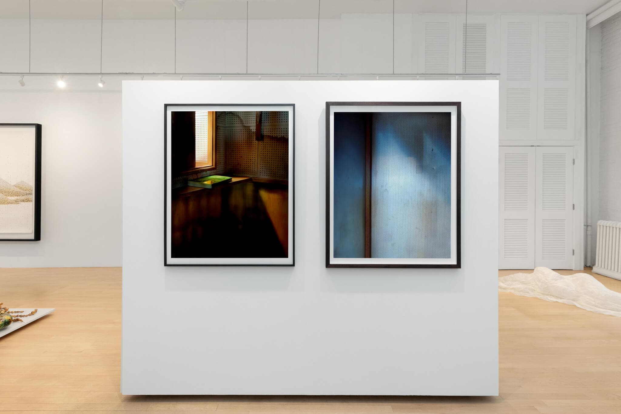 Pictured at center S. Billie Mandle, (left) Saint Christopher, 2008–18 and (right) Saint Peter, 2008–18. Installation view, “Summoning,” on view at Praise Shadows March 13–April 11, 2026. Photo by Dan Watkins for Praise Shadows, Boston.