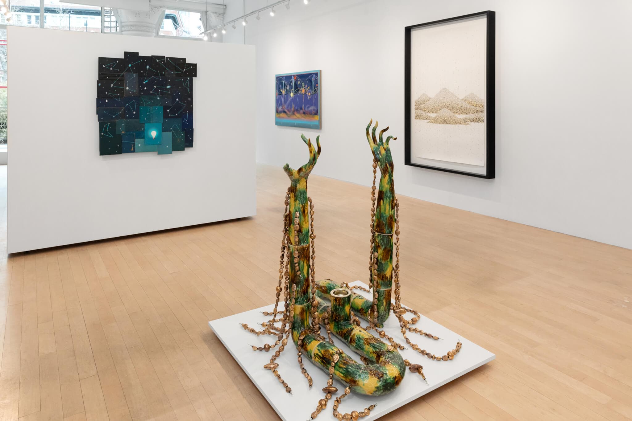 Inside, the buzzy crowd moved between works by thirteen artists, including a new painting by Duke Riley, photographs by S. Billie Mandle, and sculpture by Cathy Lu. The exhibition, on view through April 11, invites artists and audiences alike to “summon” people, ideas, and memories into the space—a conceptual framing that doubles as a kind of inauguration for the gallery’s next phase.